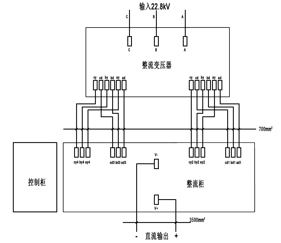 整流系统的设计是为电解铜和锌工业、烧碱、电解水氢工业等提供直流电源,输出总功率为5246kW(外观视频:https://youtu.be/Jkute55ZYyA )。