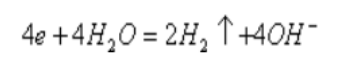 水的电解方程:在直流电作用于氢氧化钾水溶液时,在阴极和阳极上分别发生下列放电反应,见下图所示。